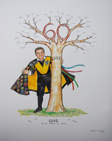 Una original forma de tener un recuerdo totalmente personalizado para un cumpleaños, un aniversario de boda, una jubilación,.... En esta lámina, personalizada con un retrato del homenajeado, los invitados podrán plasmar su huella, con lo que obtendrás un precisoso recuerdo de ese día.
